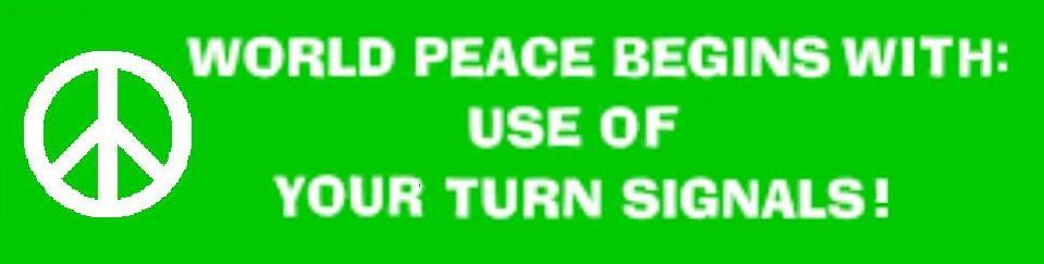 [Comment: ...or to leave them OFF while maneuvering in traffic, making me and other drivers wonder what other unpredictable actions might be coming up...or after having engaged the Directional Indicators, drivers can also leave them on continuously, completely oblivious to the never-ending clicking noise and blinking Dashboard Indicator in front of them, causing me and other drivers to wonder if they're taking the "right way around the earth"...and proving that "it takes all kinds".] Remember:
