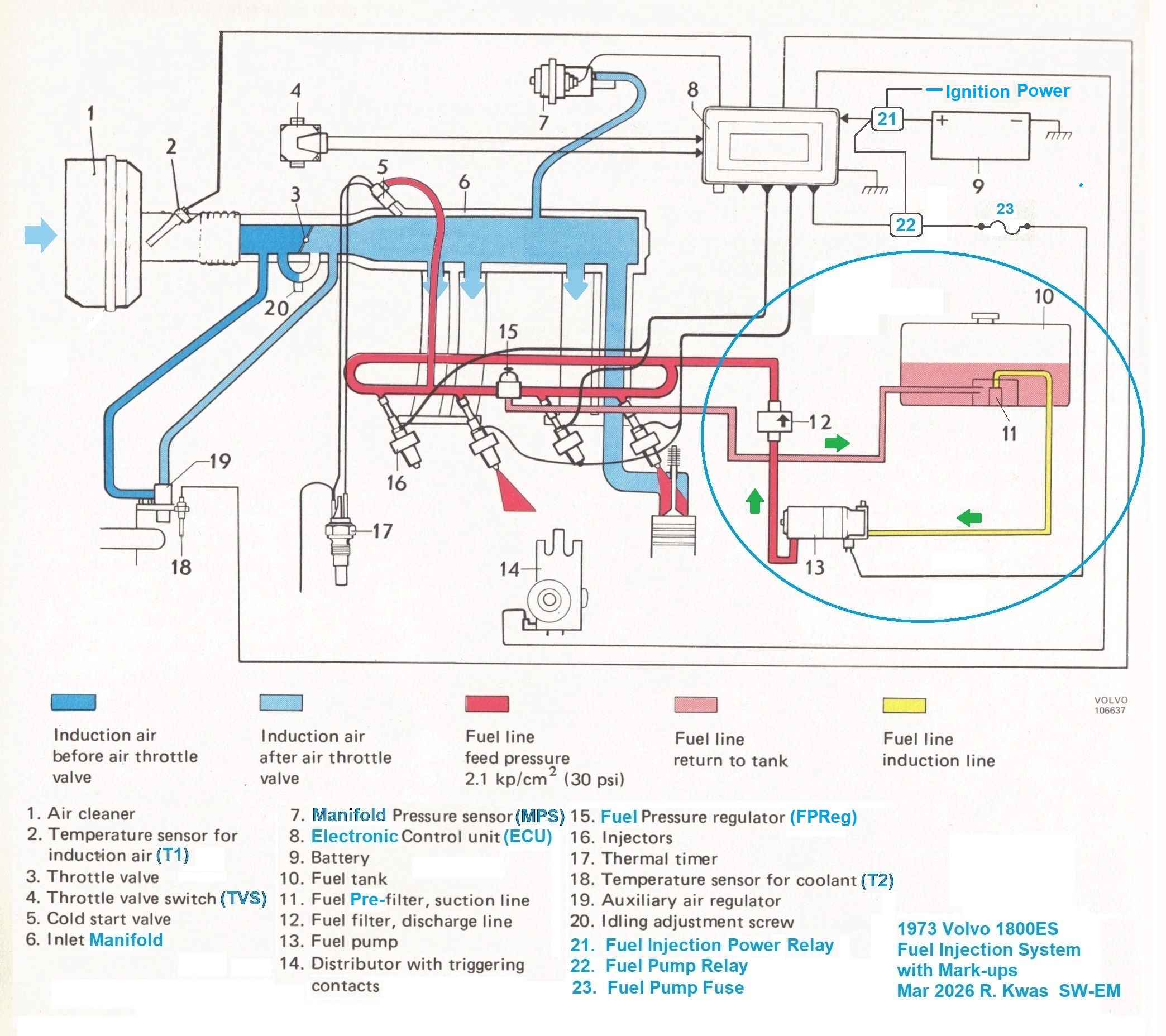 "I just learned that the Fuel Pump, the one original to the '73ES, has an internal FP
