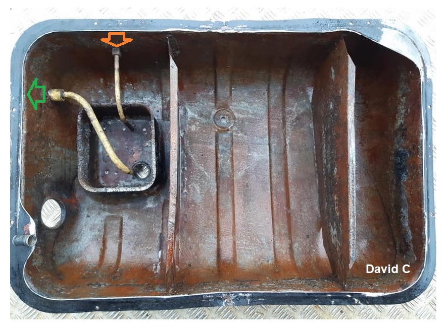 David Critchley picture of what he stated to be a Tank from his '71 E (which should be a Version 1 style), used with his kind permission...but this looks to the author like a late ES Tank with the Pick-up Tube, Pre-filter and Sump arrangement...now I'm confused! [Could it be that the tank had previously been replaced with a later (Version 3) one...?...this could not be confirmed by David.]