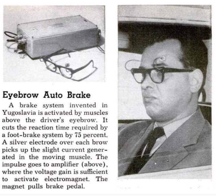 The sharp inventors of the Eyebrow Auto Brake went on to develop and offer the Yugo, which is quite popular now with vintage car enthusiasts......in Bratislava!