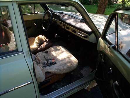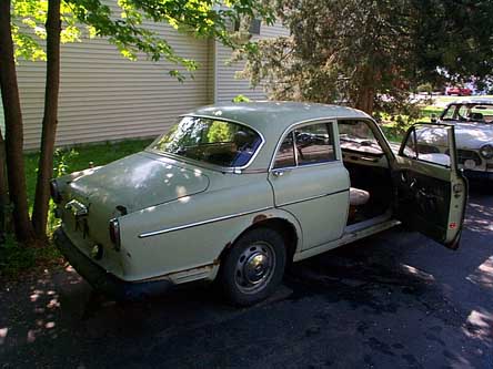 Amazon chassis No. 233090 first came into our circle of acquaintances around 1977, when it was bought in Newington, Connecticut, for "not much" from ??? by Dave and Gretchen A. Currently, they are both prominent VCOA figures, driving Volvos with square sheet-metal ...pretty soon probably also front-wheel drive and cup-holders [oh the humanity!], but at that time, the plan was that after some minor attention, the round-fendered beauty be commissioned as Gretchen's first vehicle (it was an automatic, and she was to learn driving with it), joining their (445) Duett (the original mini-van) already in service. There's not much to tell about this part of its history because for unclarified reasons, the car never made it out of the garage! I do recall however gathering, wrenching (that's always more fun with friends!), and beer consuming (that too!) around it with Dave and Gretchen, in those fun (and low-responsibility) times... not to suggest that I'm not having any fun now!