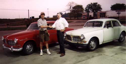 Eventually, after lucking into a low mileage former Illinois state detective car at the state auction - a Chevy Caprice peel-the-tires-off-the-wheels-hey-where'd-this-Corvette-motor-come-from? - police package saying "I've never owned a V-8, but if I was going to, this would be the one", he offered the (no slouch either but no contest against the monster V8) decommissioned Volvo to me in '98 for less than "not much". As I just couldn't allow an entire Amazon spare parts collection to unceremoniously be sent to the dump, and as it sounded like the perfect reason for a fun weekend excursion, I flew out to pick up the car. Bob had assured me it was perfectly capable of making the trip back to New England, as it had many times before. The plan was to drive back together in two vehicles, and Bob would visit his folks while here. When I arrived at O'Hara, Bob picked me up in his new car...picture two clean-cut guys, cruising along the highway in a polar bear*...we looked like a couple of undercover DEA agents...people did double takes, and we didn't get passed much!