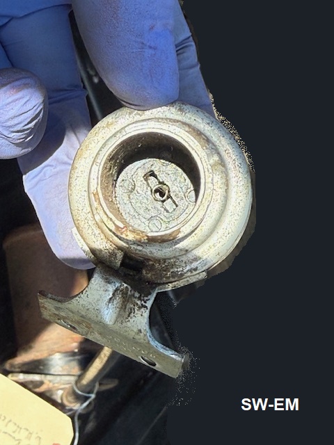 Lock Cylinder Installation: A nice, shiny, new Lock Cylinder is installed...again: Ign Sw must be in Ign ON [Pos3], AND Key must also be in in the rotational position** to allow depressing of the LC Retention Pin. Only then can Tailpiece of LC align with slot in Ign Sw, and the LC can be pushed into place against the spring at the Tailpiece, and home, such that the Ret Pin locks it into place.