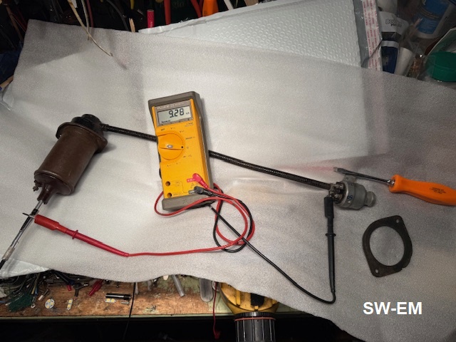 Test 2: Secondary Ign Coil Resistance: Ign Coil Neg Terminal (or as seen here, to Ign Sw term 54) to Ign Coil High V Terminal: 9.2k Ohms