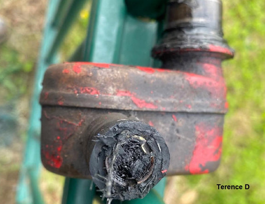 Another variation of OCV, this time again with an open down-tube, but with an Oil-Trap at the crankcase. This would have also been combined with a plain, vented Oil-Filler Cap, as shown. Picture credit: A. Majerus.