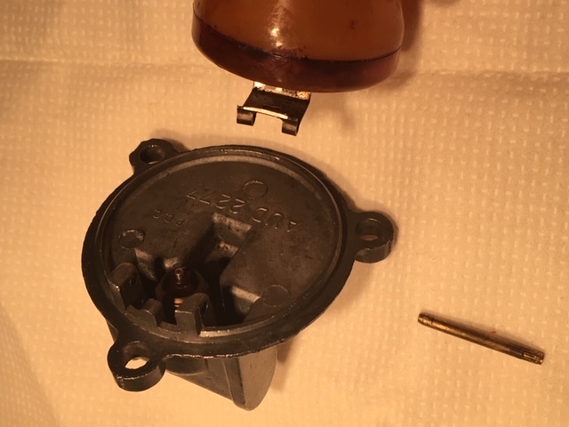 The Dashpot, along with its return spring, is now visible at each carb body. Both may now be carefully lifted off - also along their axis – taking care not to drop the Dashpot back down (without the Dome in place, there’s no centering or damping so metering needle damage can occur if Dashpot was allowed to drop uncontrolled). Handle the Dashpot assembly with great care, as the brass needle on the bottom surface of Dashpot, is critical to the function of the carb, and if bent – even slightly – will need to be replaced, and you have just turned a fun and interesting, SU familiarization session into a bad day, the rest of which will likely be spent on the phone, trying to locate an immediate source for a straight replacement needle!