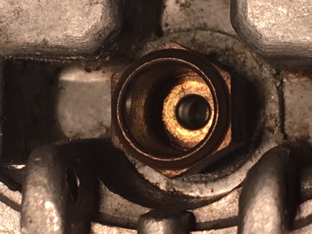 Inspection Item 2: Check Metering Needle installation into Dashpot. If metering needle shoulder is not flush with bottom surface of Dashpot it should be adjusted to that location by loosening setscrew in side of Dashpot which secures it, adjusted, and Setscrew retighted. If a brass Metering Needles is bent and the carb is reassembled, it will likely make contact with the jet as Dashpot falls, jamming Dashpot in a raised position and before bottom of Dashpot meets the Venturi, so extreme care is called for when trying to loosen a stubborn needle...usually the needle can be loosened by hand, but if not and one has to use tools which are easily capable of applying enough force to turn the needle into a pretzel, extreme care must be exercised...I’ve have had good results (no disasters in the form of bent needles!) by loosening holding Setscrew, wrapping a piece of protective, yet grippy leather around the fat base of needle and very carefully applying just enough twisting force to persuade the needle to loosen its grip on the socket. A light film of graphite grease on the setscrew threads and needle base would certainly prevent such difficulties.