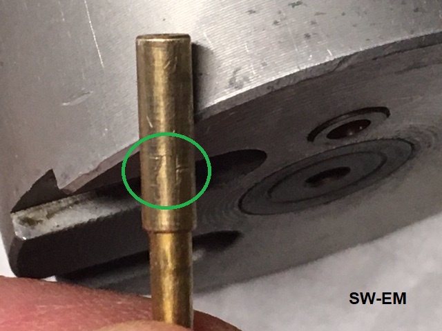 Inspecting Conical brass sealing area of Shuttle. This one has visible