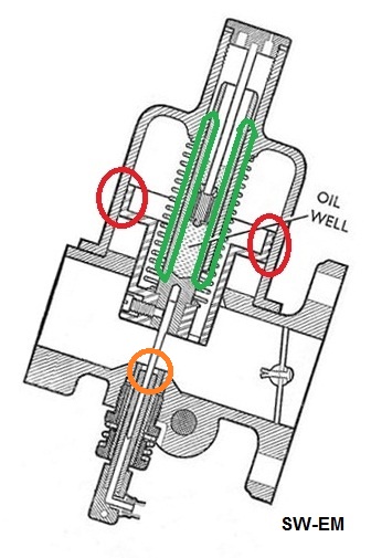 Orange is where Metering Needle protrudes into Jet orifice. This is also a non-contact area. The two should not be making contact...contact is caused by non-concentricity between the two, either as a result of a non-centered Jet, bent Metering Needle or some other out-of-the-ordinary-condition. This contact causes sticking as they should freely move, and results in wear on the Metering Needle, so it must be remedied, but this is advanced service beyond the scope of Carb familiarization covered here. http://www.sw-em.com/su_carbs.htm#Tuning%20and%20adjusting%20SUs ...and here: http://www.sw-em.com/service%20notes.htm#Centering%20SU%20jets Note: If upon inspection, signs of contact (in the form of longitudinal scratches) or (or worse) wear are evident on the Metering Needle, carbs can be reassembled (on the basis that if engine was working, it should work as well again)...but this is not right, and should be addressed as soon as possible...again, it is beyond the scope of simple familiarization, but is an important factor in the proper operation of these carbs, so must be corrected.