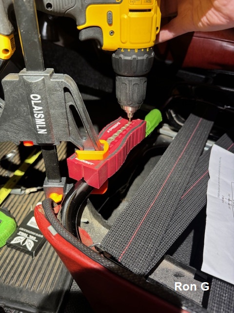 While drilling the necessary additional holes, Ron found a drillblock helped to keep the bit from wandering off the tube.