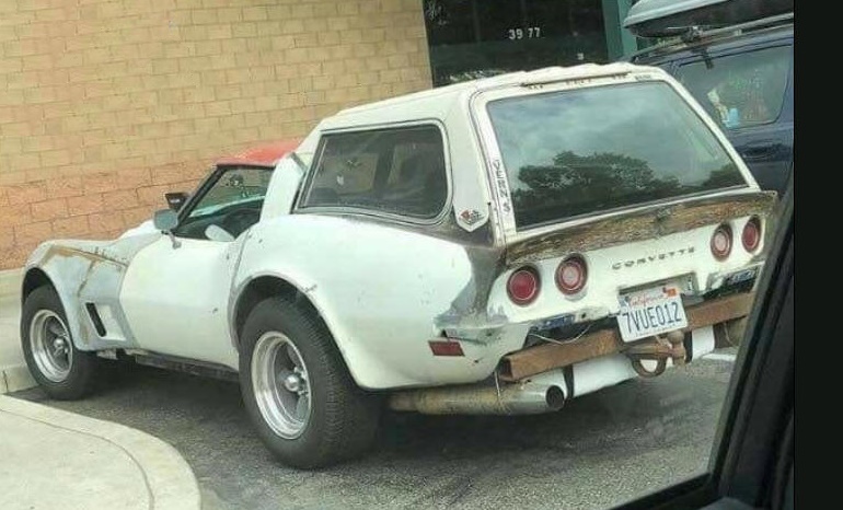 ...a "private" version [...and some things should be kept private...! This is what happens when you have a Corvette shell and a pick-up truck cover, too much fiberglass, Bondo, and time on your hands...it's an automotive shotgun wedding!]:
