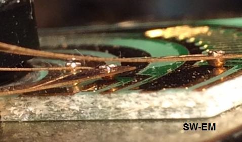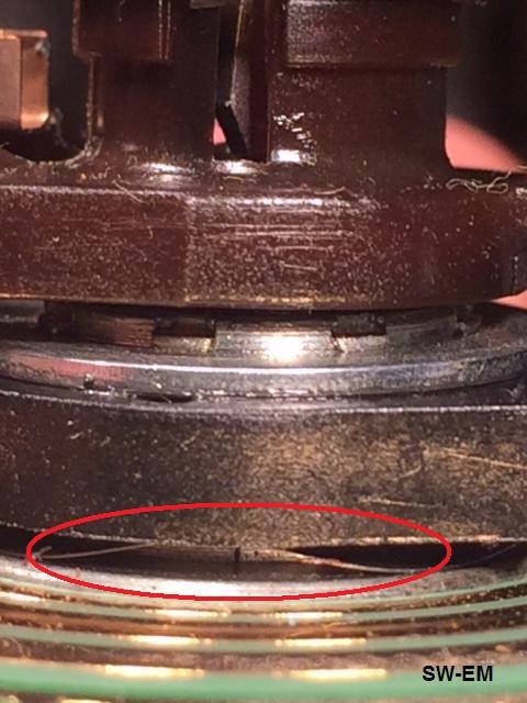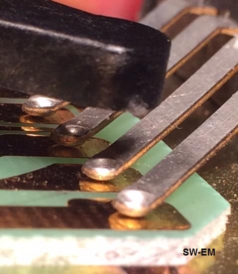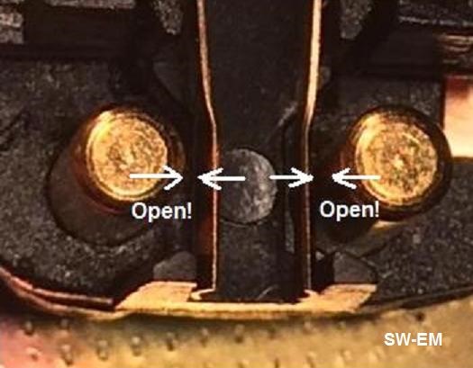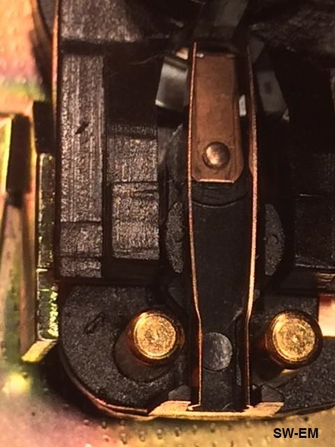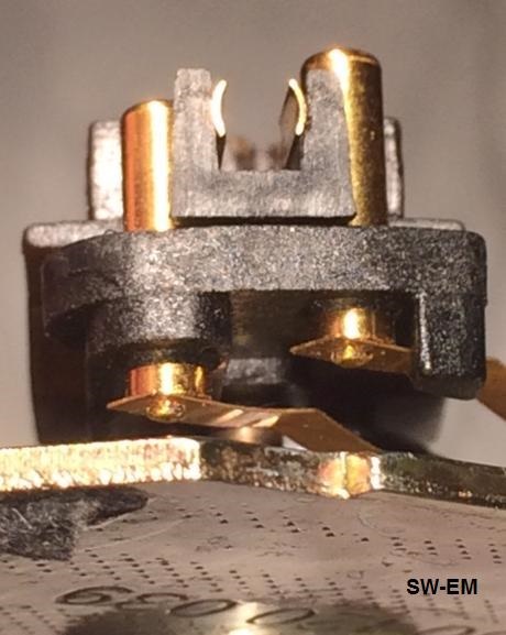 Side view of (gold plated) Drag Switch Posts showing riveted connection to Wiper