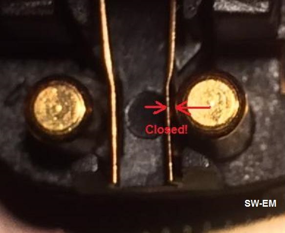 Sliding Contacts (qty. 3). Low angle edge view showing riveted