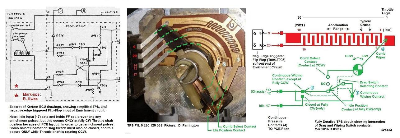 There's no witchcraft in play here!...its simply explained by the fact that a DMM only allows a static test, and so is not adequate for troubleshooting a transient condition as is most certainly happening at the TVS (by its nature)! Given the inputs to the Enrichment Circuit Flip-Flop that we have all (including the author, until recently!) been looking at, and are quick to point the finger of blame at, are the wrong area! After extensive further consideration (see above!), I now have corrected my position and believe the Comb Select Contact of the Drag Switch Selecting Contact with its slow closure and copper contact to be the source of the problem, although I have yet to explain precisely HOW this plays with the rest of the ECU to result in the MaC...but I'm working on it!