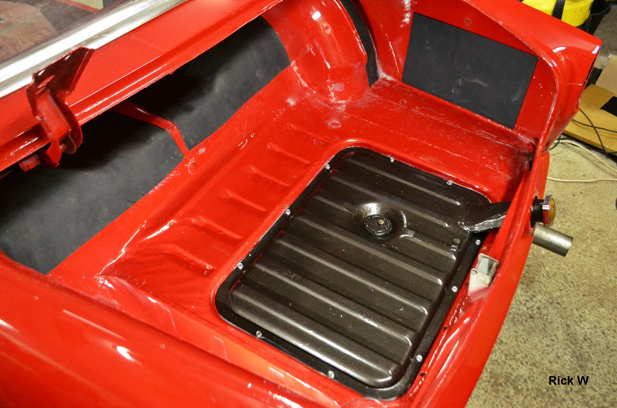 Gussets support Filler Neck to seam, here.  The fuel filler protrudes through inner bulkhead, then outer body.  No supporting rubber surround is present yet in this excerpt of the R. Watson photo.