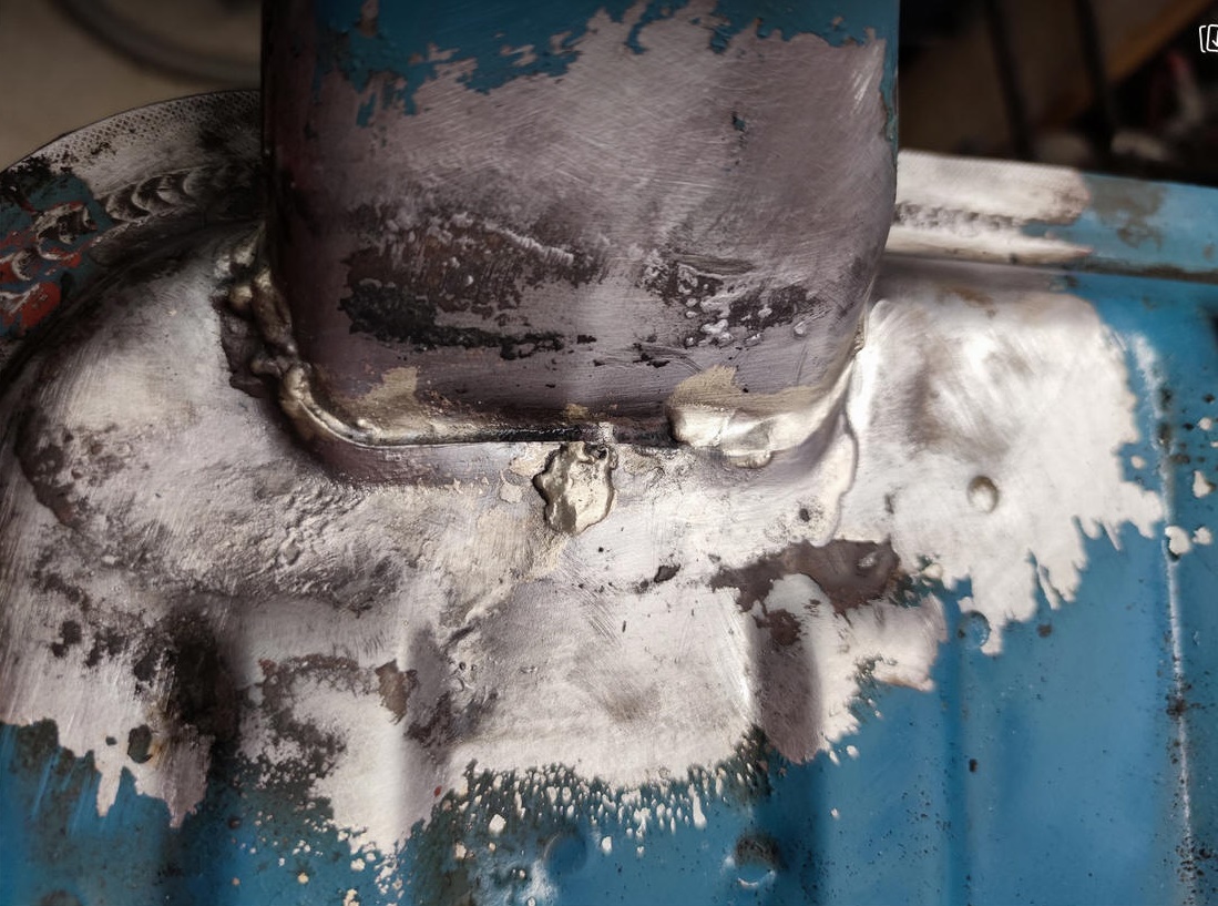 Common weakness of the 122 sedan Fuel Tank.  Soldered joint at Filler Neck to Tank.  The solder fractures due to weight of the fuel filler pistol being hung onto the filler.  This is less of an issue in other models, where the filler is better supported in the body. A leak-test with water verifies the fractured solder joint at Filler Neck root.