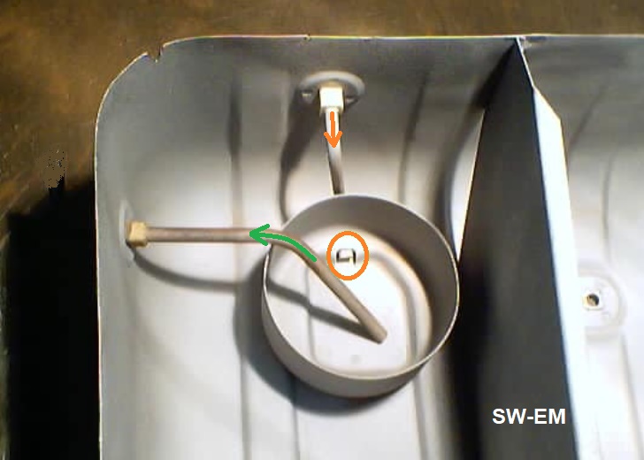 Internal Anti-Slosh Compartment is clearly apparent.  Fuel return is at front-facing side of Tank, and it feeds into bottom of ASC (Orn), as well as replenishment ASC from main Tank volume.  At Green, the Fuel Pickup tube also feeds from the very bottom of ASC, and no prefilter is present (as with the later ES and replacement Tanks).  Source of picture:  http://www.gas-tank.com/Links2009/Volvo.htm