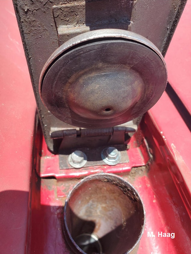 " Leakage as shown in Pieter's video is absolutely typical...and due to cumulative fatigue of years flexing the joint from hanging the fuel-filling pistol onto the fuel filler...that is only a solder joint, and it gets stressed and shows once again, that solder just isn't mechanically strong and up to the task long-term...  My Tank had a cracked solder joint there also (although I was not particularly rough with hanging the fuel filler on there!)...I resoldered it, but noting the long-term weakness, added strengthening gussets (see below) to significantly improve the mechanical support of the filler-neck.
