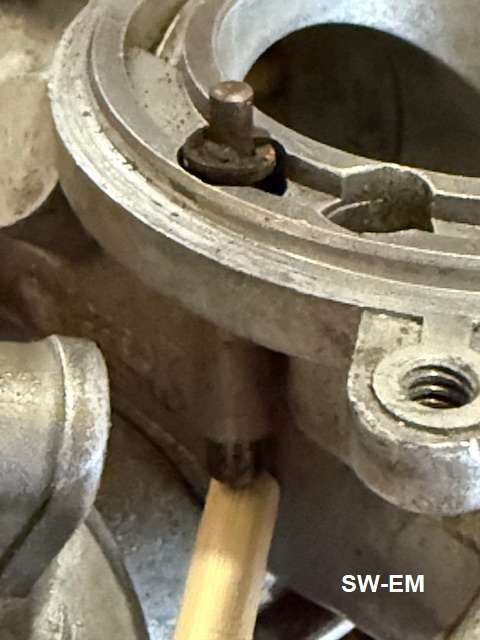 Properly installed Metering Needle. The MN shoulder is flush with Dashpot lower surface, as can be seen here, being checked with a straightedge.