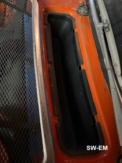 Once the Cowl area is clean of debris, inspect the depression.  There may be fine dirt, debris, and biomass that have made their way into the Cowl Depression past the fine grill and Debris-Tub, and some of these can coagulate and clog the drains, allowing the level to build up the half inch or so, until it overflows the Fresh-Air Vent Seals and flows into the passenger compartment...  It's important to assure is that the (2) Drains are clear to do their job.  The Fresh-Air Cowl Grill does not even need to be removed for this...a simple flexible wire inserted from below, into the Draintube outlets at the rear of engine compartment, below the Heaterbox can assure a clear path, but if this wire runs into a blockage, or it has been a looong time since the Grill has been cleaned, a first-hand look might be best!