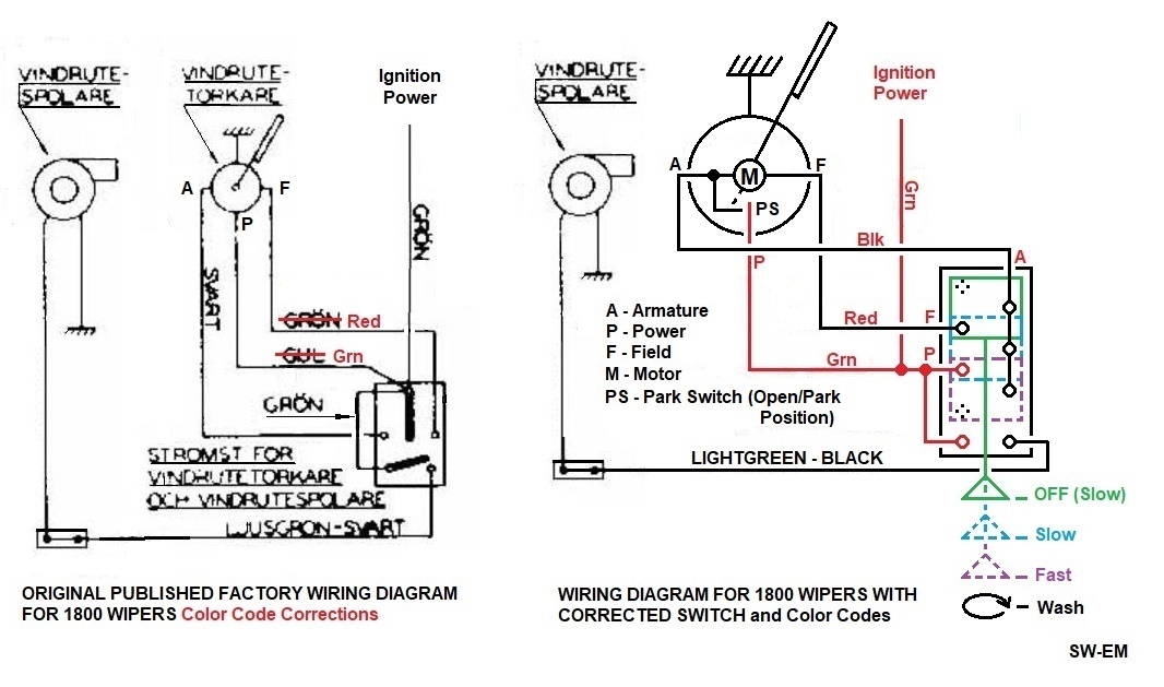 1800 Wiring diagram Wiper Switch extract, including Color Code corrections of