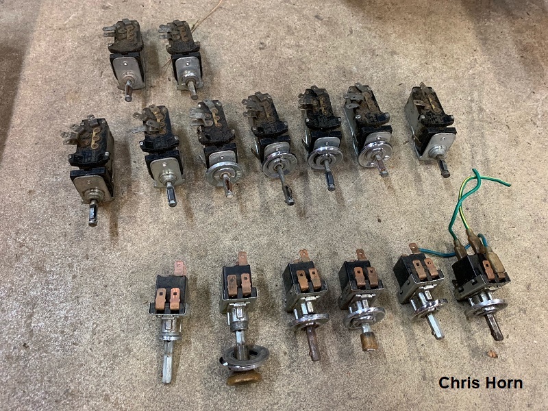 When I contacted Chris looking for early 1800 Wiper and Fan Switches to disassemble and inspect, he sent me a picture of his sizable selection: