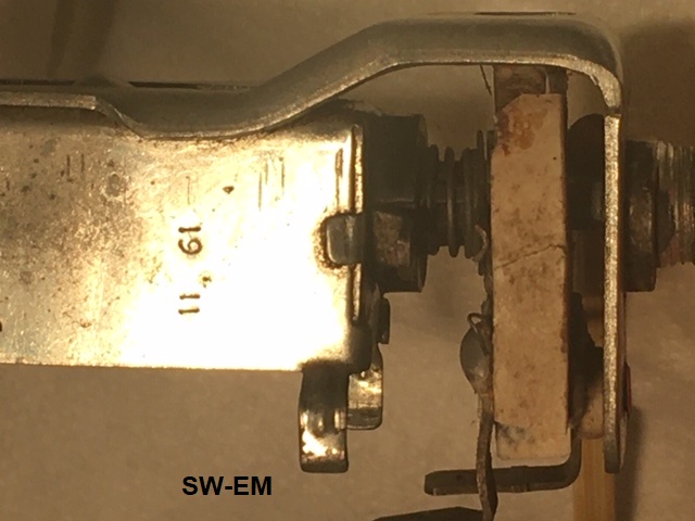 Base of switch is placed in position, compressing contact springs, and temporarily held in-place with a wire-tie, allowing the switch to be test-cycled and checked. Once satisfied with the mechanical switch action, tabs securing Bottom Plate in place are gently bent back into place to hold the assembly together.
