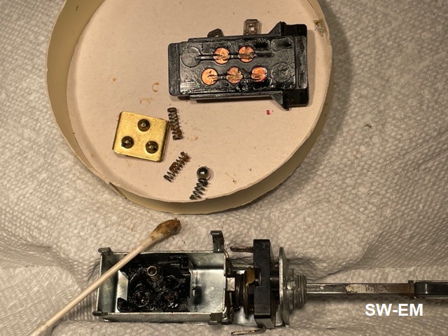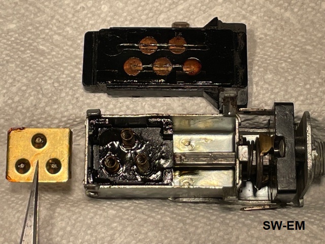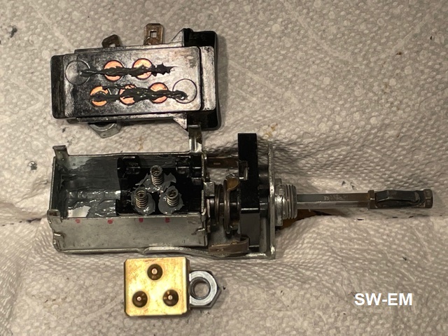 Internal Connections: Upon disassembly, the shape, of Contact Plate, and position of contacts on Base Plate, including witness marks in the lubing grease, make documenting the somewhat complicated connection in the three Knob Positions possible.