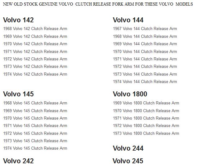 Application List for the 1212189 Clutch Fork by Volvo vehicle models and production years (the 122 application is not even shown, but is similar to '68 140):