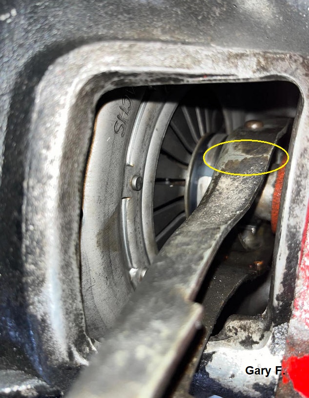 The mechanically actuated Clutch system has a further weakness which develops after time (Cumulative Fatigue issue). The Throwout fork (also: Withdrawal Fork, Item 31) was of a formed sheetmetal design. Fractures would develop at an inside corner where the "C" section had a shape change to clear the Bellhousing. Force concentration at this Stress Riser results in eventual failure. Symptoms of this are a decreasing Clutch action as Pedal is depressed, and inability to be able to adjust for an adequate Pedal function within the adjustment range. These symptoms are not unlike when cable is stretching in preparation to failing. That is why it is important to determine which of the two common failure modes is occurring.