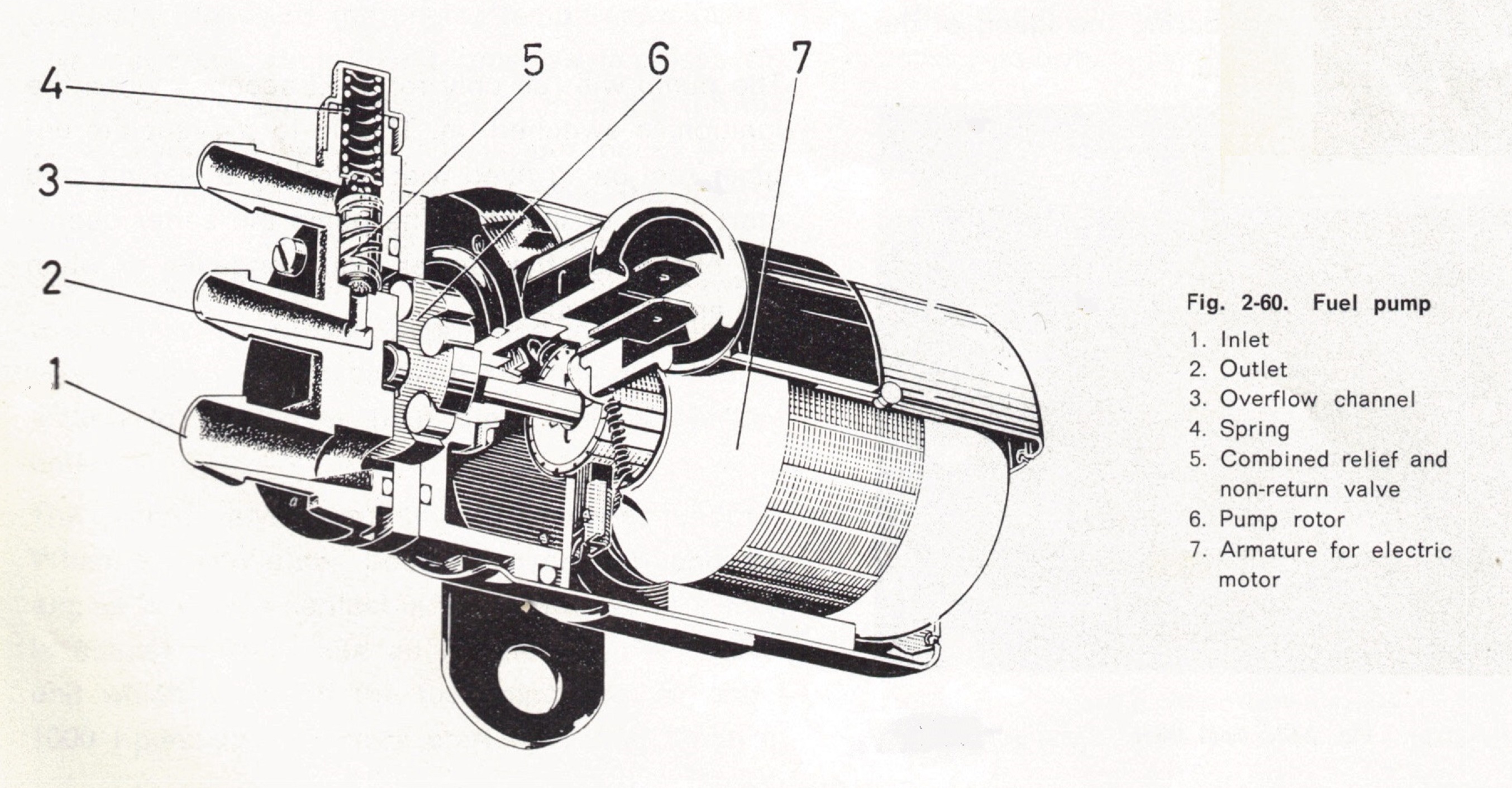 It not only pumps fuel normally, but it also accommodates some other operating conditions, the simplest (not a problem, but which can occur) when just running out of fuel [for men drivers!], then replenishing the supply... Once the Tank is refilled, and fuel is once again available to be pumped to the engine compartment, the internal combination Relief / Non-Return Valve helps to prime the Fuel Pump, and remove air, to allow starting and running normally.