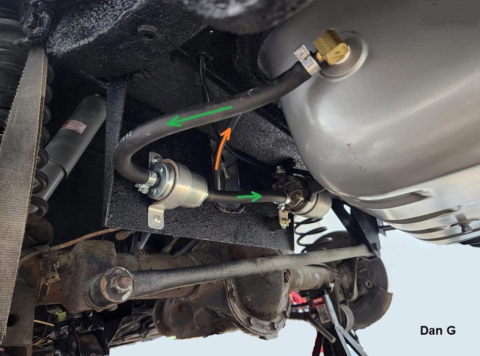* Notice that some replacement Tanks are configured with an internal Pre-Filter, so the external FuFi is plumbed post-pump...since there is no Pre-Filter in the original E Tank, the FuFi was located before Pump.