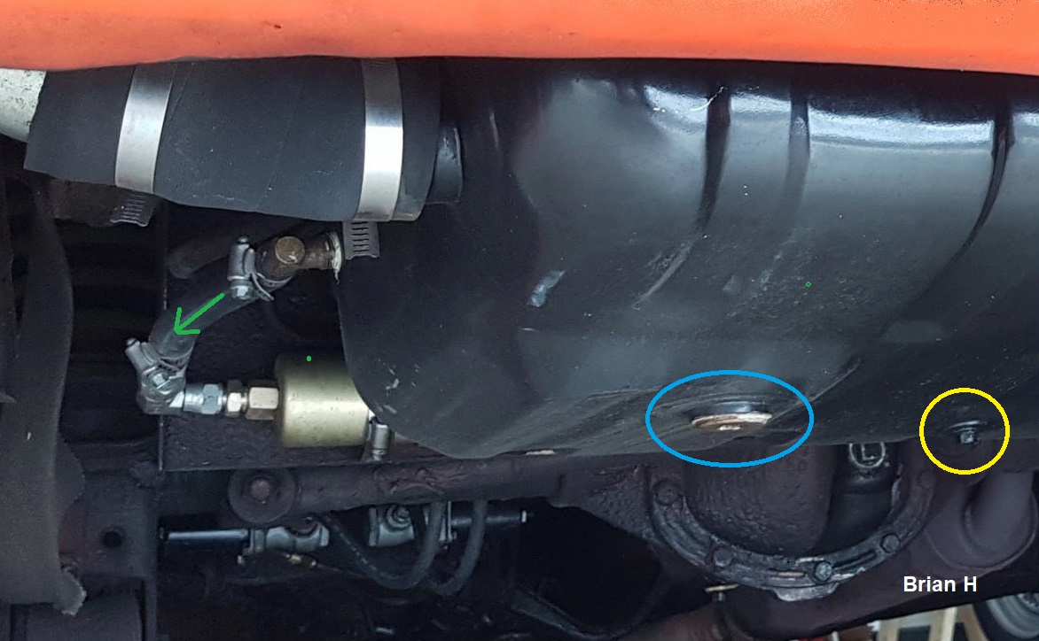"When I replaced the tank, I noticed that the Strainer ("Pre-Filter" above the large brass Sumpplug) of the new VP Tank was partially melted(?!?) and was not sitting properly on the inlet pipe...so I decided to remove the plastic blob and try a Pre-filter. I found a large canister filter and fitted it with some fittings between tank and pump, it has worked fine for 9+ years. No effect on fuel pressure or drivability..." [That's OK when it's a new Tank and there is no debris coming from it to block the pre-filter and lead to fuel starvation as in the situation above. See: Correction for Noisy Fuel Pump with Pre-filter].