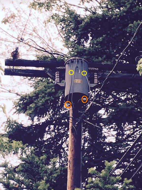 Electric Service disrupted at Swedish Embassy*, because of Galvanic Corrosion. One Sunday morning, not long ago, half of the electrical items plugged in at the Embassy weren't getting power?!?...including, in the kitchen, the coffeemaker!!...this was cause for Immediate and Decisive Action! ...after operating the coffeemaker from an outlet which was powered, and averting crisis No. 1, a quick check of the electrical service panel showed the problem wasn't due to a tripped breaker, but that one of the two phases coming into the house was completely dead. Half the electrical panel was deenergized! Checking the meter, or seeing if branches had torn down a cable and looking with binoculars, at the connections to the transformer at the pole, revealed nothing unusual, and some of the neighbors, by now also standing around their front yard, were also experiencing similar power problems...the problem was clearly "on the pole".