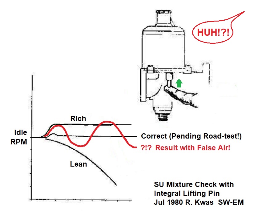 Finally: This article has been reviewed by my SU expert and resource: Tom Bryant, who doesn't like the Lifting Pin much in the first place...he states in his excellent article on tuning SUs [...worth a read!]: "...those lift pins under the pistons; they’re useless.". Source: https://thosbryant.wordpress.com/2015/10/04/su-carburetor-tuning/ ...so I expect you won't be seeing him use them when he does a tune-up, even with his beautifully rebuilt carbs, which are most definitely NOT sucking any False Air anymore, so might even have half a chance of them working like shown in the graphic...!
