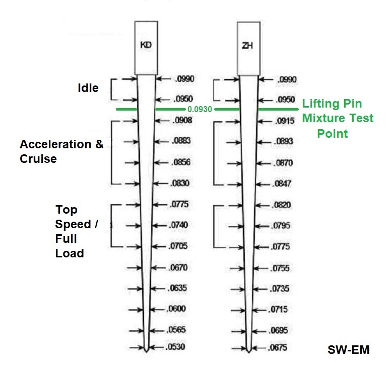 I have highlighted OD at the Lifting Pin Mixture Test Point for the two typically fitted Metering Needles.