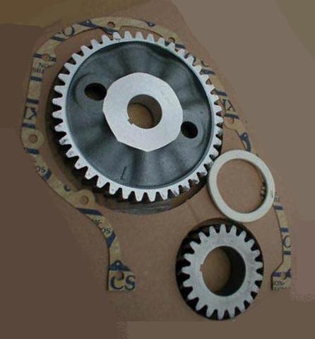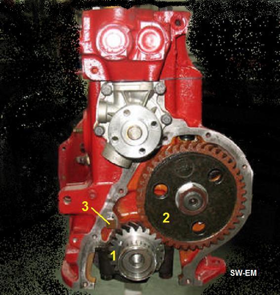 1. Crankshaft Gear (21 teeth) 2. Camshaft Gear (42 teeth), and 3. Oil Nozzle to keep the interface