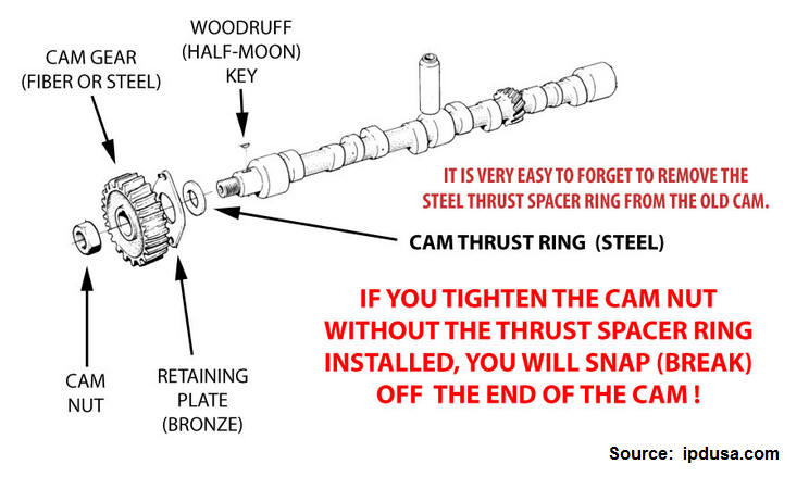 Also...NEVER use an impact driver to tighten Cam Nut of a replacement Cam. It's OK to use it only on a Cam which is being removed and retired from service, but subjecting a new Cam, which is a machined casting...certainly NOT intended to, or capable of, withstanding those kind of impact forces, to such impacts, risks breaking off front of the Cam!