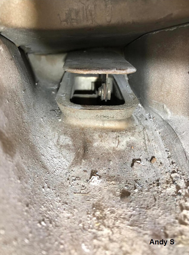 Below are pictures of this second drainage provision in the Heater Core Enclosure, as well as likely results of it not working as intended. Rust in bottom of enclosure suggests rainwater drainage was impaired (pooled Coolant would have the telltale green color and likely not have rusted as it contains anti-corrosives), allowing standing rainwater to pool, and rust the inside of enclosure, likely also spilling over onto the cabin floor as it reached the level of air vent (oval opening), as it appears to have done.