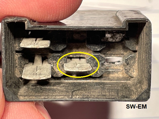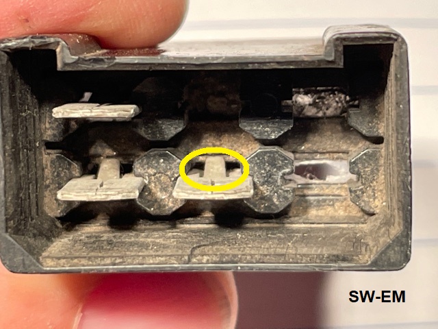 The solution to dim/yellow Headlights due to this in-line resistance is simple, before considering changing your Headlight wiring system over to include Relays: One at a time, push the retention clips on the male terminals of Hex-Conns to defeat their function, remove the terminals, inspect** and clean terminals to bright shiny metal, add a film of ACZP, and reassemble into the Housing. Done!